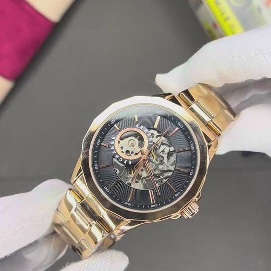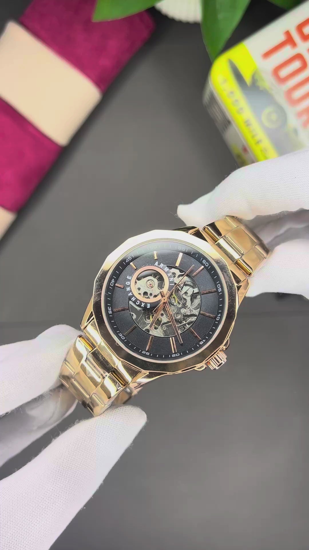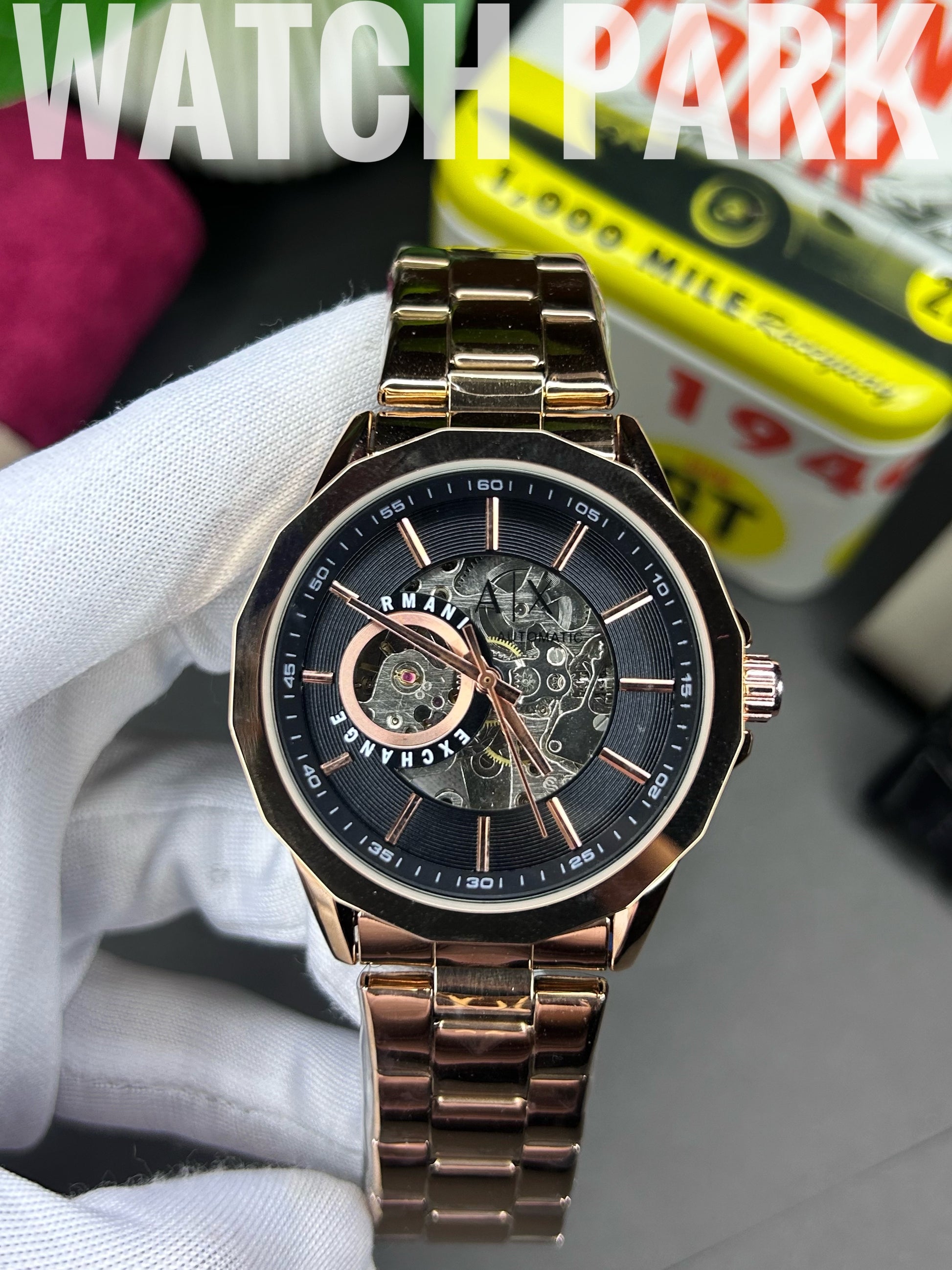 Armani Exchange Automatic Skeleton Watch (Rose Gold-Tone with Black Dial) ⌚️