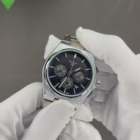 A perfect mix of style and precision, the Tissot PRX Chronograph stands out with its stunning Black dial and sleek stainless steel body. Designed for modern watch lovers, it delivers Swiss accuracy with a bold, refreshing look.