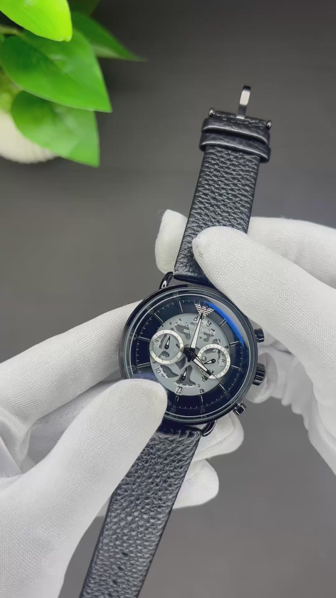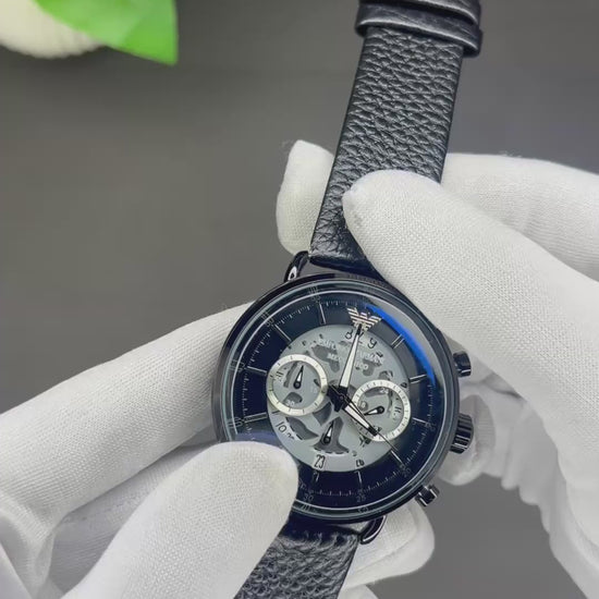 Emporio Armani Meccanico Black Leather Chronograph Watch ⌚️