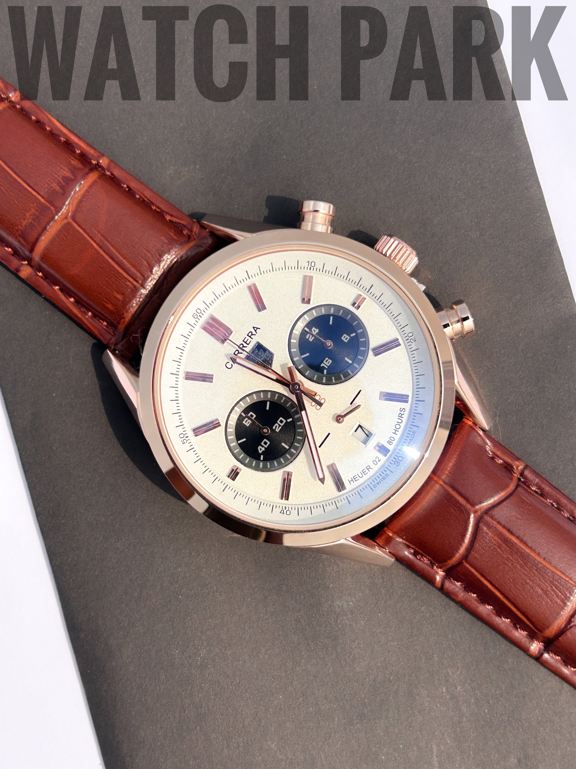 Executive Watch - Tag Heuer - Champagne dial edition - Rose gold body - Brown belt