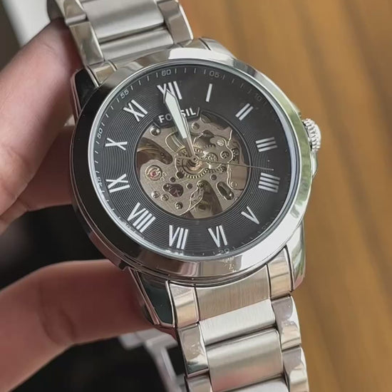 Fossil - Townsman Automatic - Black Skeleton - Silver chain