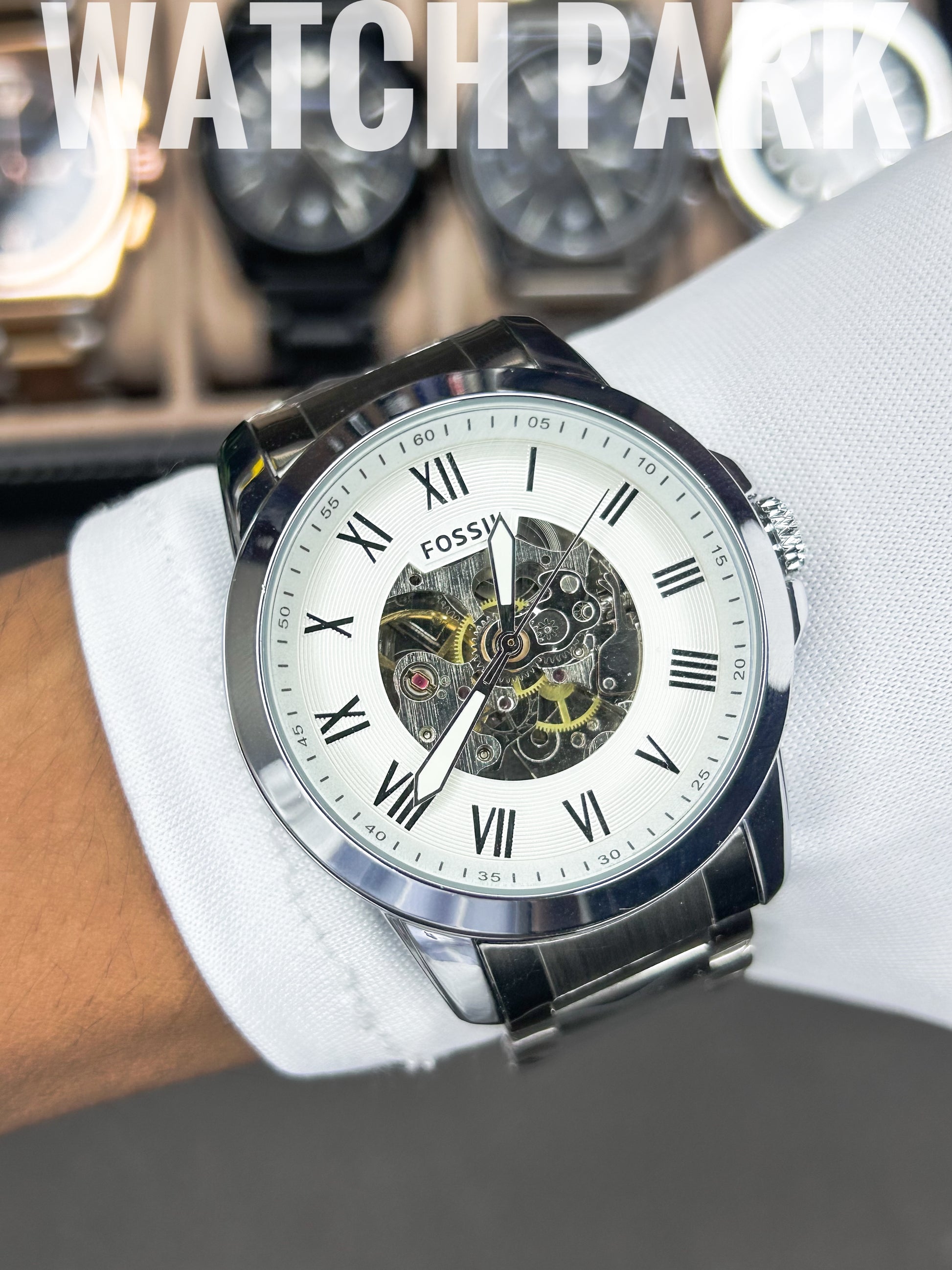 Fossil - Townsman Automatic - White Skeleton - Silver chain