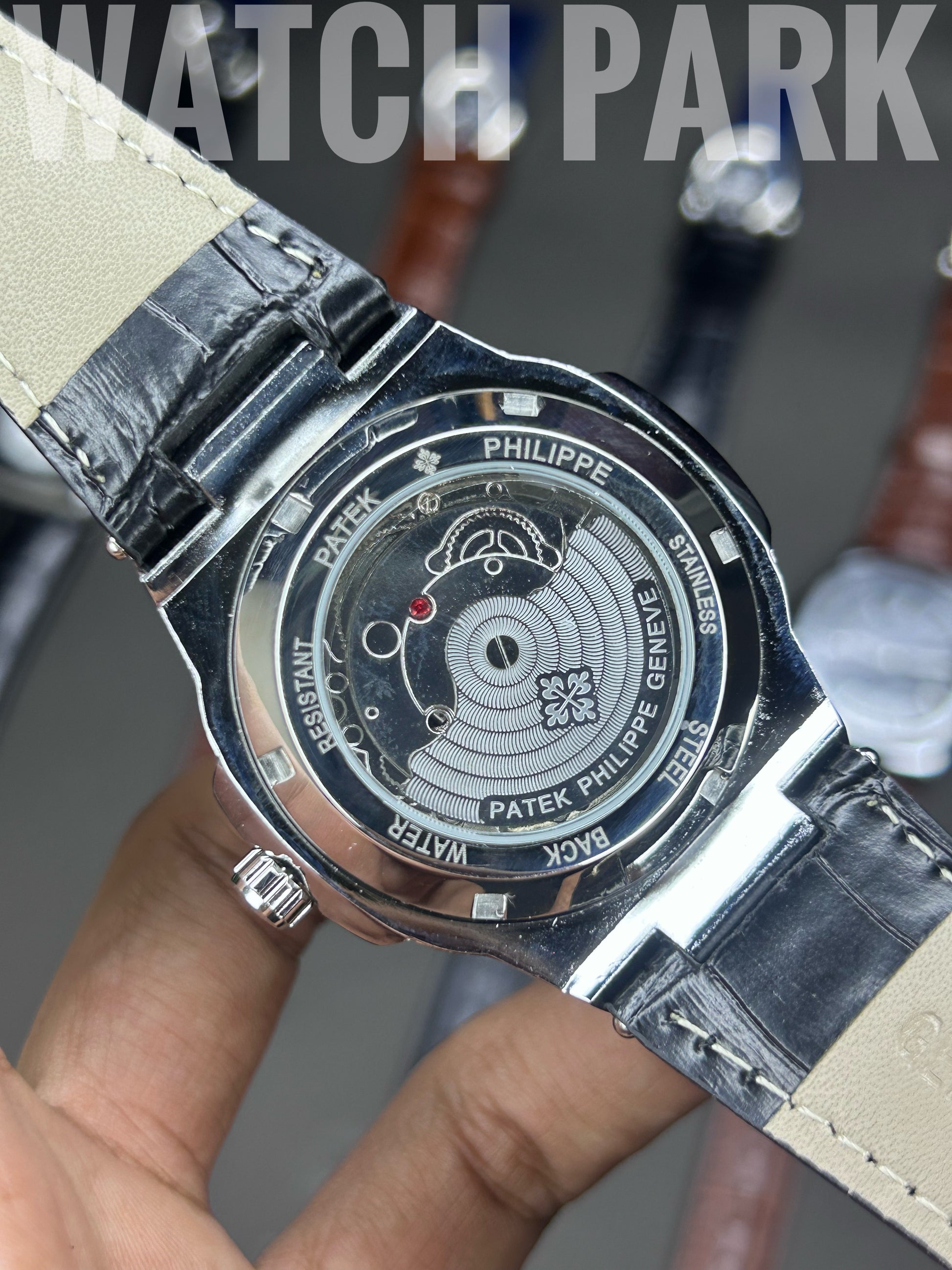 | Strap | Black Crocodile-style Genuine Leather (some images show a brown strap option as well) |