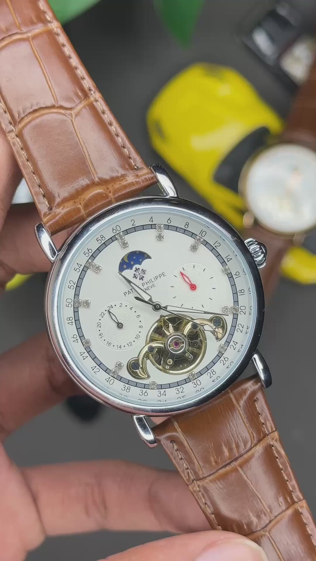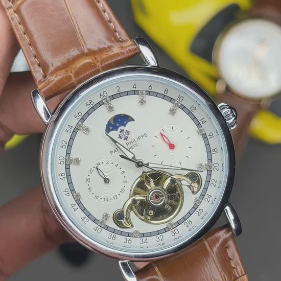 Rich Watch - Patek Philippe - Moonphase - White dial & Silver - Brown belt