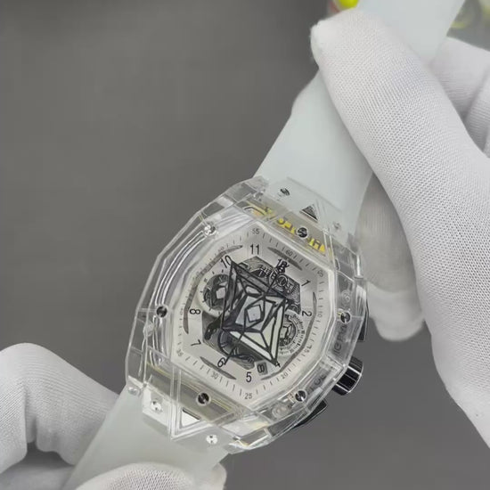 Engineering Marvel: Own a piece of advanced watchmaking. The painstaking process of machining the sapphire case takes approximately 100 hours per watch, showcasing commitment to extreme craftsmanship.