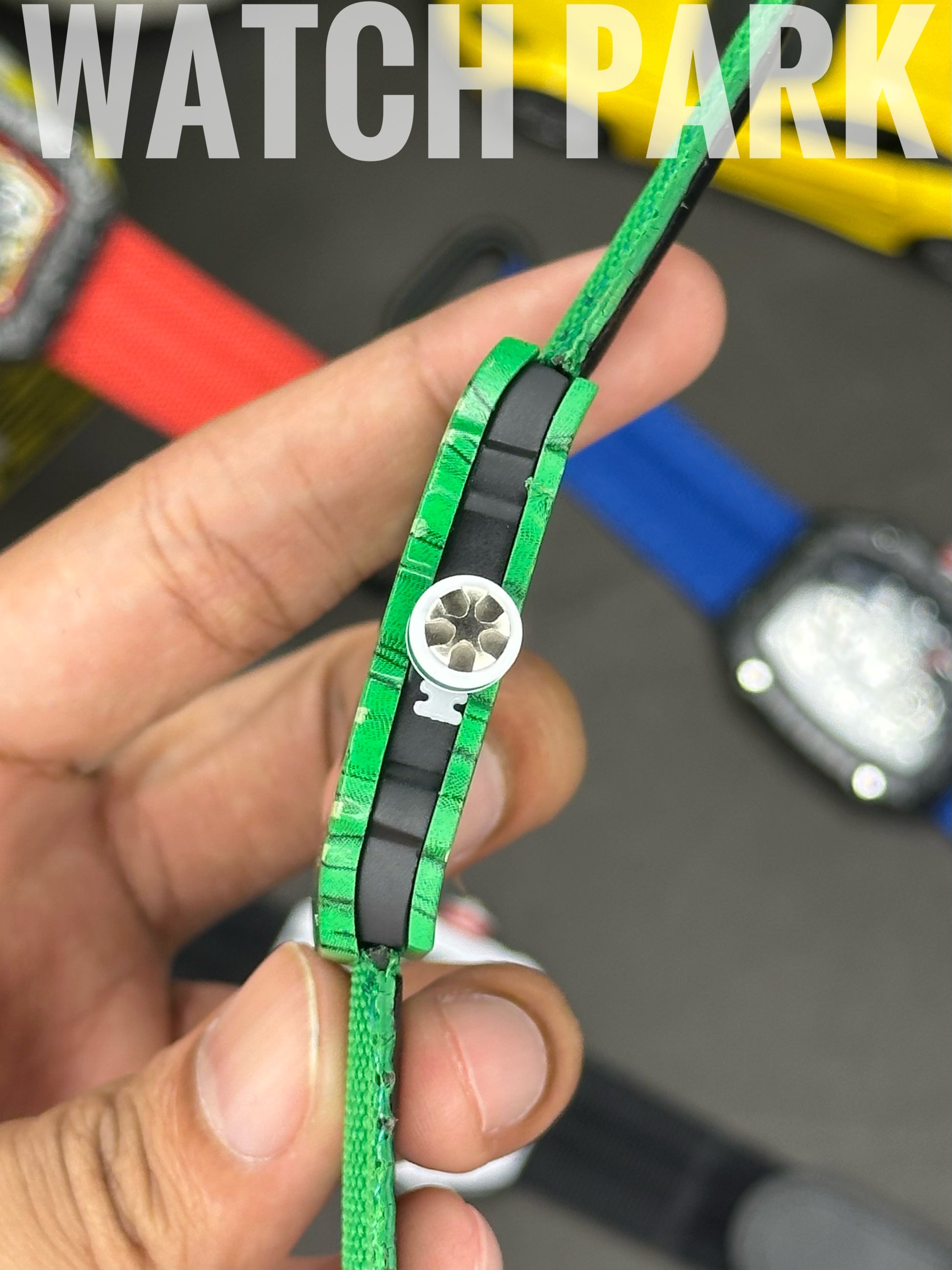 Case Color: Green with horizontal yellow stripes.
